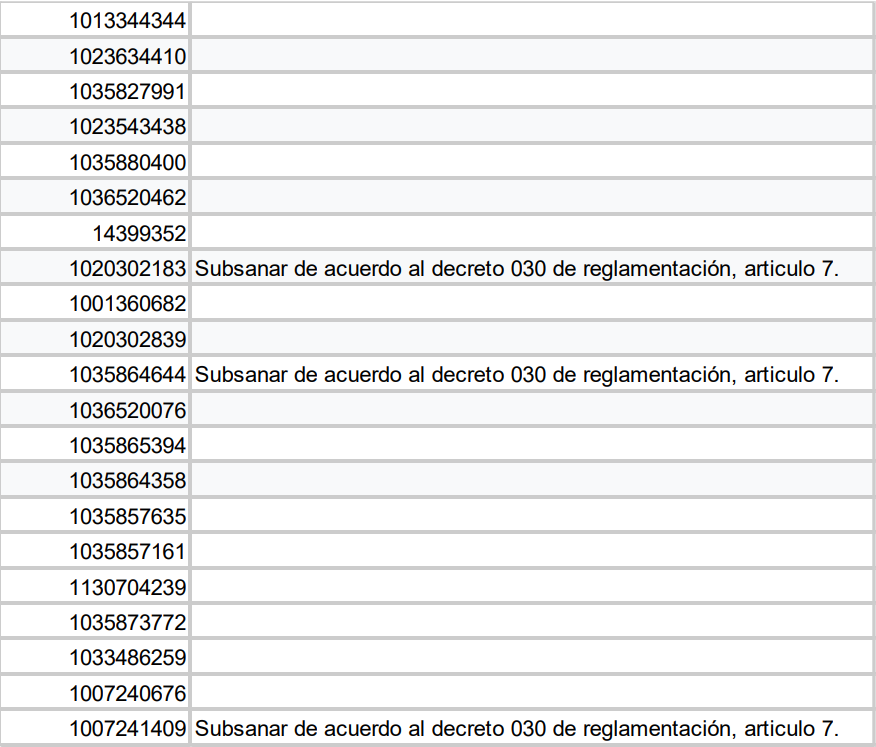 Parágrafo Segundo: Los postulantes clasificados como no habilitados corresponden a aquellos que incumplen requisitos de carácter esencial establecidos en el Decreto 030 de 2026, los cuales no son susceptibles de subsanación.